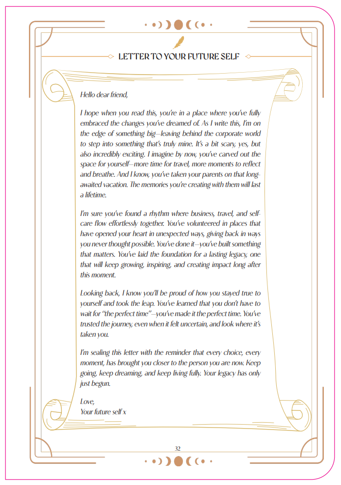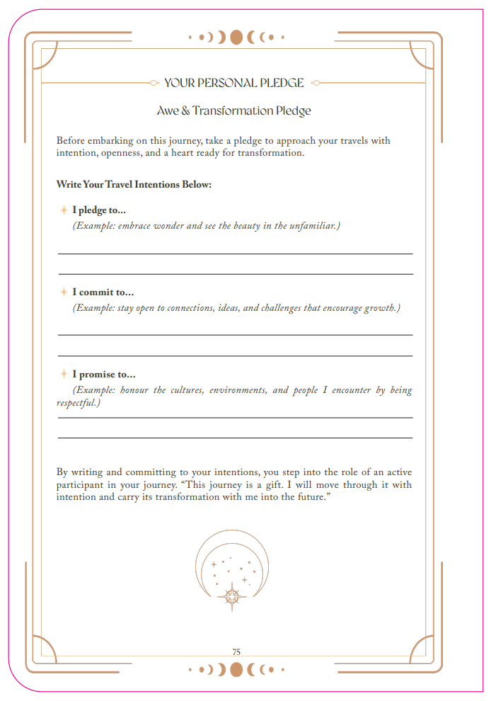 “This isn’t just a notebook - it’s a carefully crafted companion for transformation. Every page, prompt and ritual is designed to guide you deeper, helping you travel with intention and return renewed.”